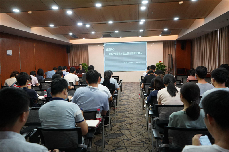 8月27日,松山湖材料实验室党总支邀请中山大学林钊副教授为实验室全体党员讲党课,在党课开讲期间,林钊从习近平谈马克思主义为开端,通过唯物主义、资产阶级、经济?;雀拍畹慕步饴浣诺健豆膊承浴肪瘢镅陨钊肭吵觯缛び哪?,为听众呈上了一场精彩的党课。