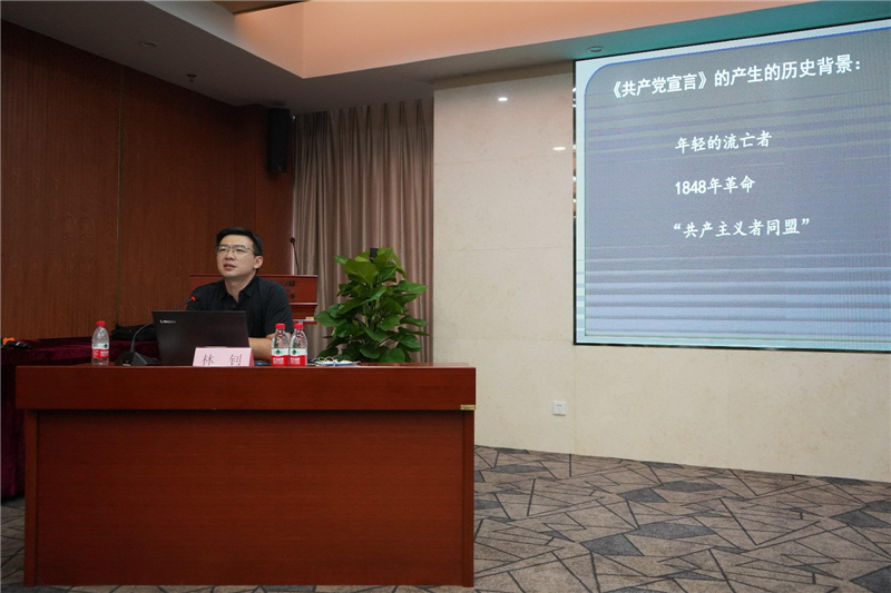 “习近平总书记深刻指出,从《共产党宣言》发表到今天,170年过去了,人类社会发生了翻天覆地的变化,但马克思主义所阐述的一般原理整个来说仍然是完全正确的。” 林钊讲到,马克思作为自由撰稿人,有两种写作风格,既有直接面向大众的显白语言,也有专业深奥的精深表达。同时以《共产党宣言》《资本论》为例,“马克思以其独特的思想涵养以及高超的修辞技巧,让《共产党宣言》具有极高价值的可读性。而《资本论》里面有着丰富的理论知识,内行读起来也是需要细嚼慢咽。
