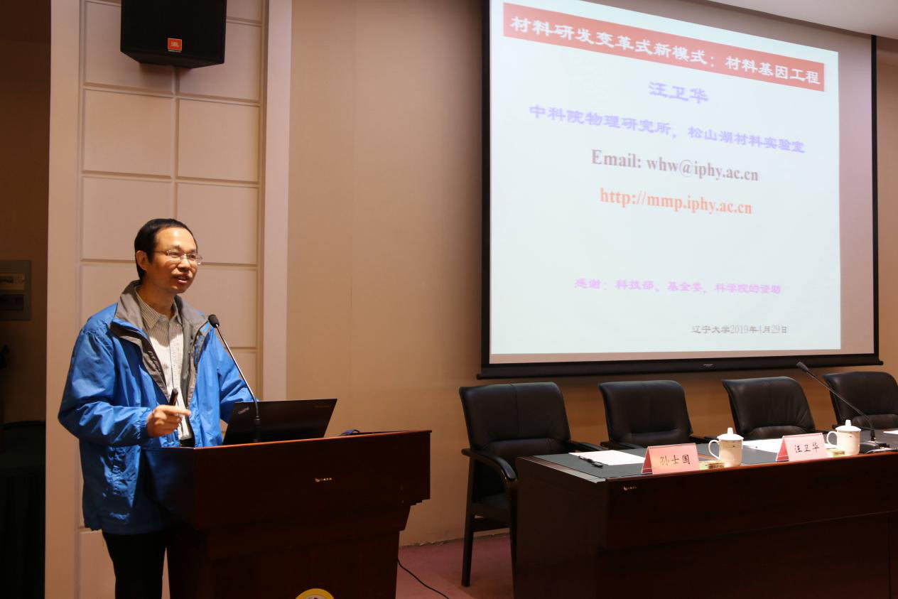 签约仪式后,汪卫华主任作了题为《材料研发变革式新模式:材料基因工程》的前沿讲座,介绍了材料基因工程理念、国内外相关动态以及中科院物理所和松山湖材料实验室利用该方法在高性能非晶合金探索中取得的突破性进展,受到了辽宁大学广大师生的热烈欢迎。