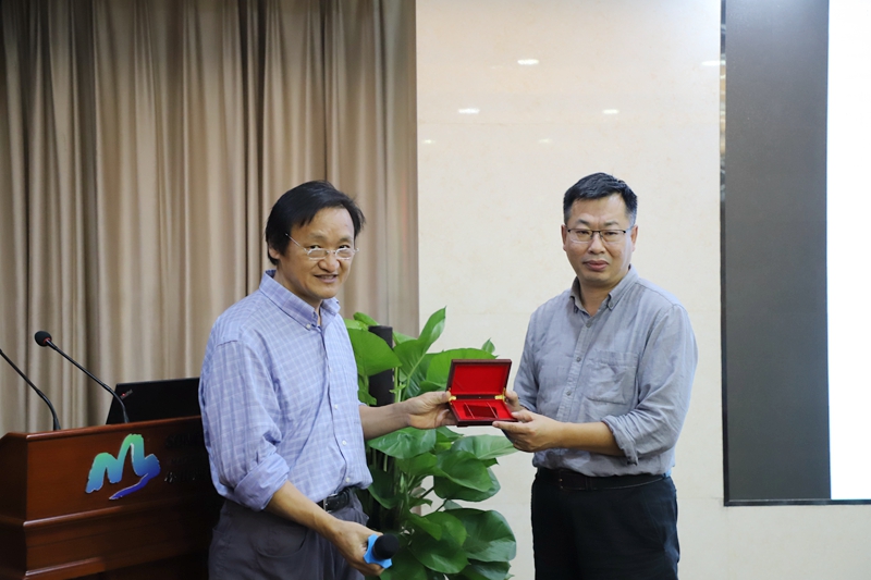10月30日,松山湖材料实验室“松湖论坛”第二期如约而至。本期活动由实验室邱东研究员邀请到清华大学化学工程系杨振忠教授作为主讲嘉宾,为实验室带来“软物质界面科学与工程”为主题的报告。本期“松湖论坛”由实验室首席科学家、主任助理赵金奎主持,实验室绿色非晶团队、中子科学平台等团队成员参与。在报告开始前,赵金奎研究员代表实验室向杨振忠教授赠予了由绿色非晶团队打造的非晶合金名片纪念品。