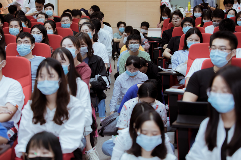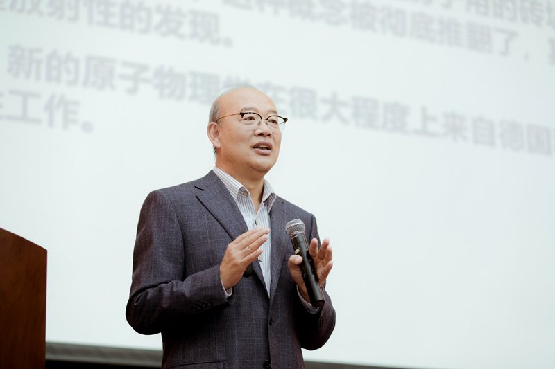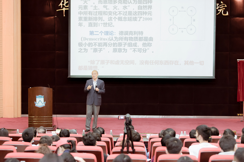 揭牌仪式完成后,王恩哥作了题为《物理在科技创新中的核心作用》的学术报告,介绍物理学与材料科学的发展,系统阐释了松山湖材料实验室的构架与运行模式。全场座无虚席,还有不少学生席地而坐,认真聆听并全程记录。