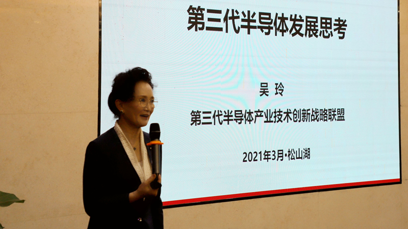 最后,吴玲研究员作了题为“第三代半导体发展思考”的报告。她从“百年未有之大变局”作为报告的切入点,呼唤从事第三代半导体相关研究的科研人员以全新的眼光看待我国和世界所处的这个时代。她指出,新一轮科技和产业变革将颠覆性地影响人类未来发展,将改变生产、生活和思维方式,将重塑生产关系和经济模式。吴玲研究员将第三代半导体的发展和应用称为“伟大的事业”,并将松山湖实验室在第三代半导体领域取得的有关成果描述为“一丝光芒”,这些生动的比喻极大地活跃了现场的气氛,也提升了与会人员的时代使命感。
