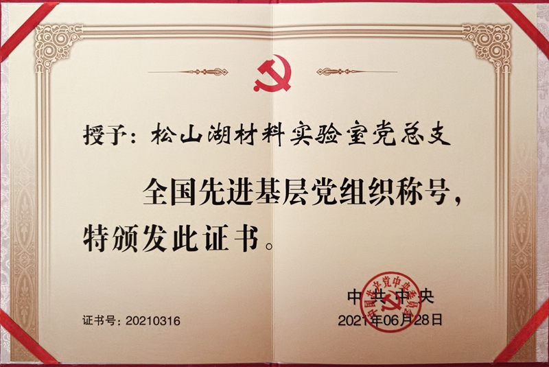 6月29日,中共中央关于表彰全国优秀共产党员、全国优秀党务工作者和全国先进基层党组织的决定全文发布,松山湖材料实验室党总支荣获“全国先进基层党组织”称号。