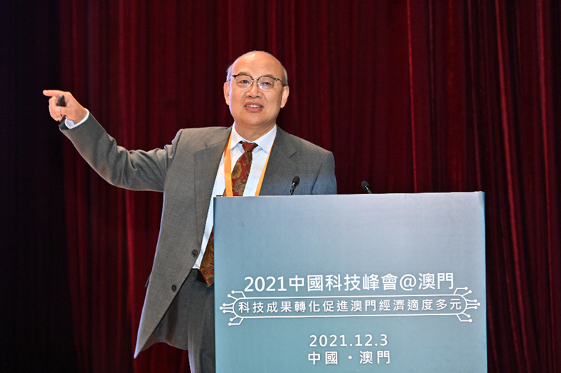 12月3日, 2021中国科技峰会在澳门举行。澳门特别行政区行政长官贺一诚、中国科协党组书记张玉卓,粤港澳产学研各界科技精英代表,以及粤港澳三地科学技术协进会负责人代表等200余人参会。松山湖材料实验室理事长王恩哥院士受邀出席,并以“架起科技成果产业化的‘铁索桥’”为题作峰会主旨报告。