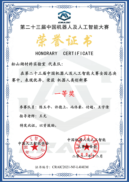 近日,松山湖材料实验室在第二十三届中国机器人及人工智能大赛全国总决赛中荣获机器人类创新赛一等奖。