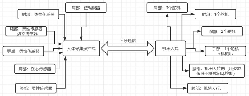 基于透明陶瓷团队独有的柔性传感器,以一套低成本、直接、高效且应用广泛的解决方案,弥补了商用的动作捕获设备价格昂贵、资源封闭等的缺点。依照方案设计一套不受环境限制,使用轻便的人体动作捕获和控制机器人系统。