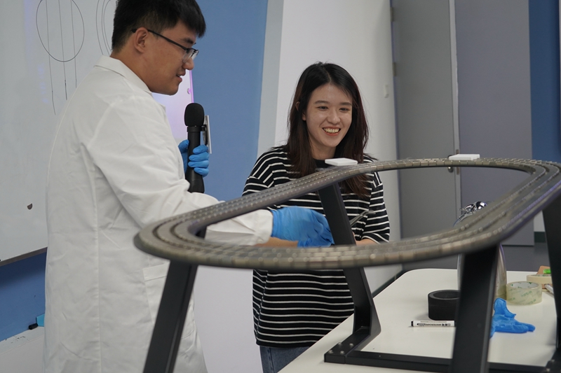 在破冰环节中,同学们彼此互动,氛围热烈,有趣的小游戏让大家发出爽朗的笑声。随后,同学们前往实验室展厅和材料博物馆进行参观,三棱镜科普队还为同学们准备了有趣的现场实验,向同学们展示了超导磁悬浮现象。在活动的最后,同学们写下祝福语,留下了对未来美好的期望。