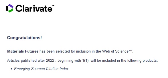喜讯 | Materials Futures被ESCI数据库正式收录!
