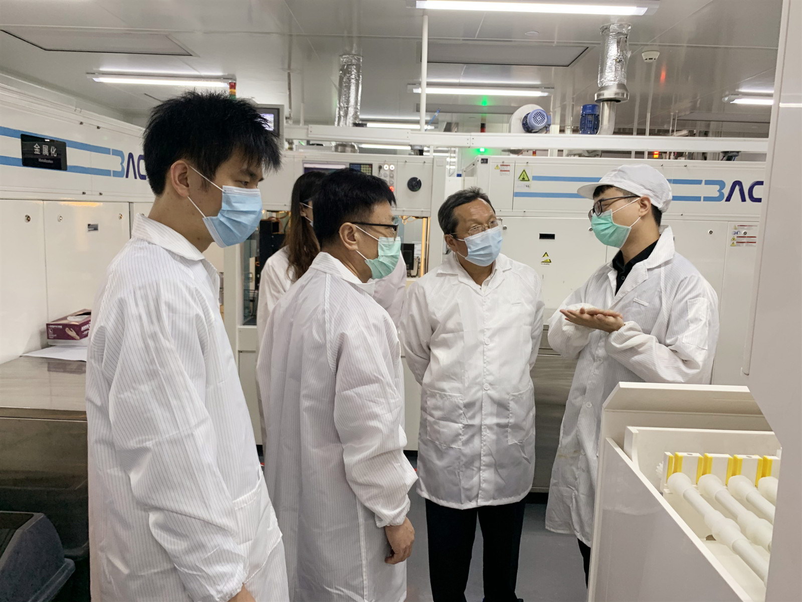(调研组参观高效晶硅电池团队实验室)