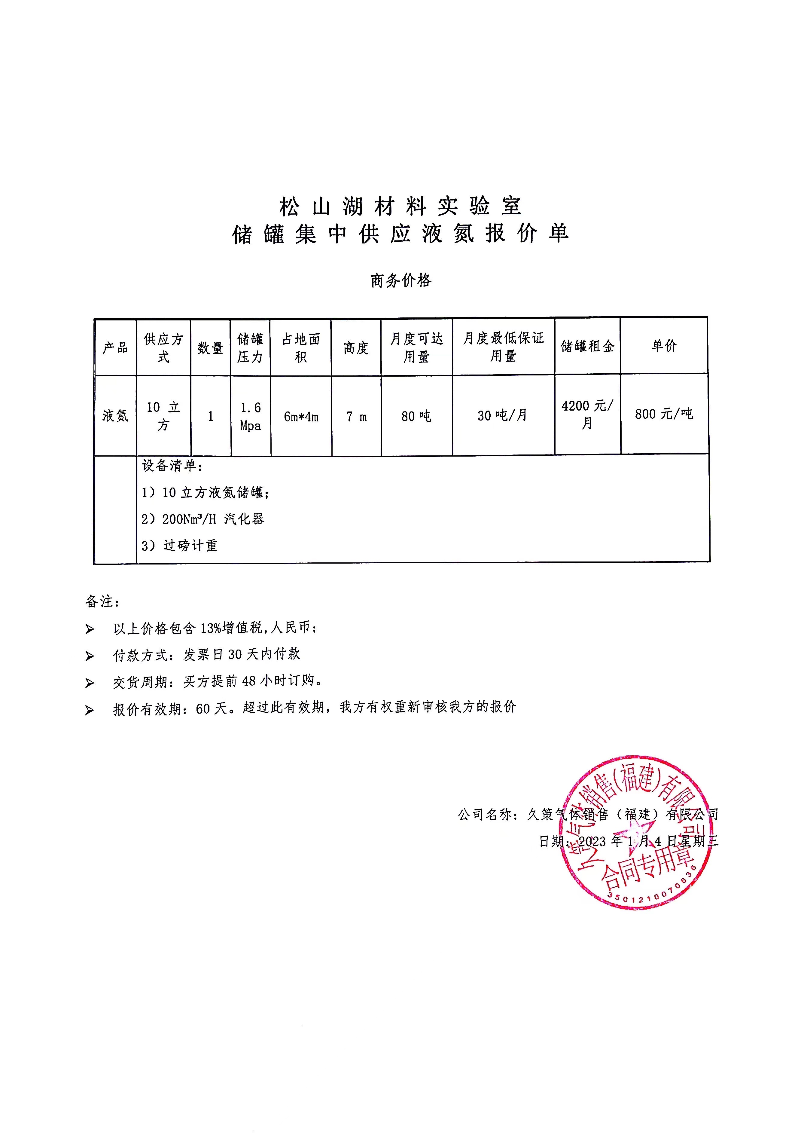 松山湖材料实验室微加工与器件平台关于2023年度液氮采购项目,采购预算 99万元。经采购需求部门进行市场调研及比价后,拟由液化空气(广东)工业气体有限公司提供(或承担),产品型号:详见附件 ,价格: 按照实际需求供货,合同总限额99万元。