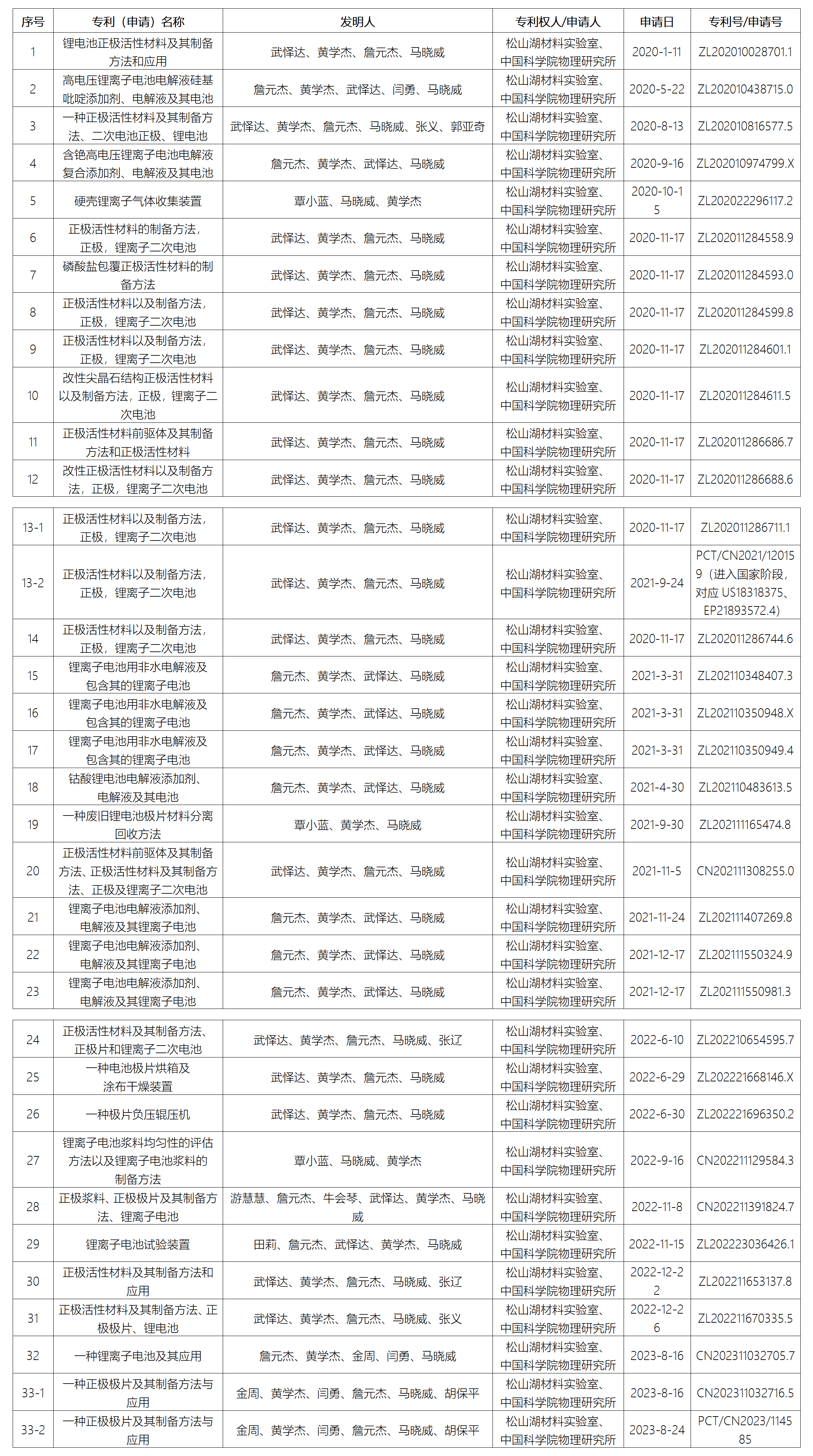 根据《松山湖材料实验室科技成果转化管理办法》规定,现对松山湖材料实验室(以下简称“材料实验室”)锂离子电池材料团队“锂电池正极活性材料及其制备方法和应用”等33项职务科技成果转化股权奖励相关信息公示如下: