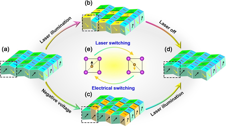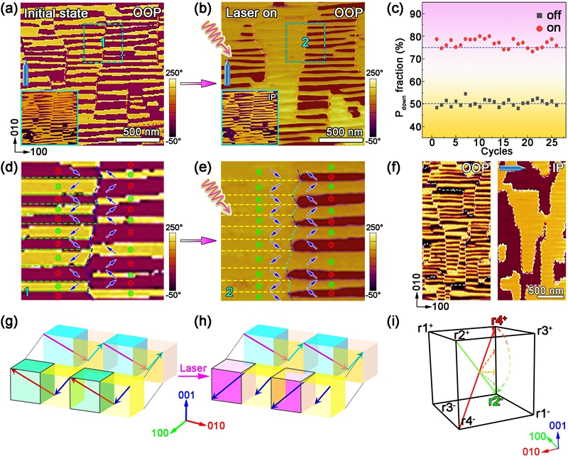 图2:激光和电场共同作用下,BiFeO3薄膜中可控的极化翻转途径