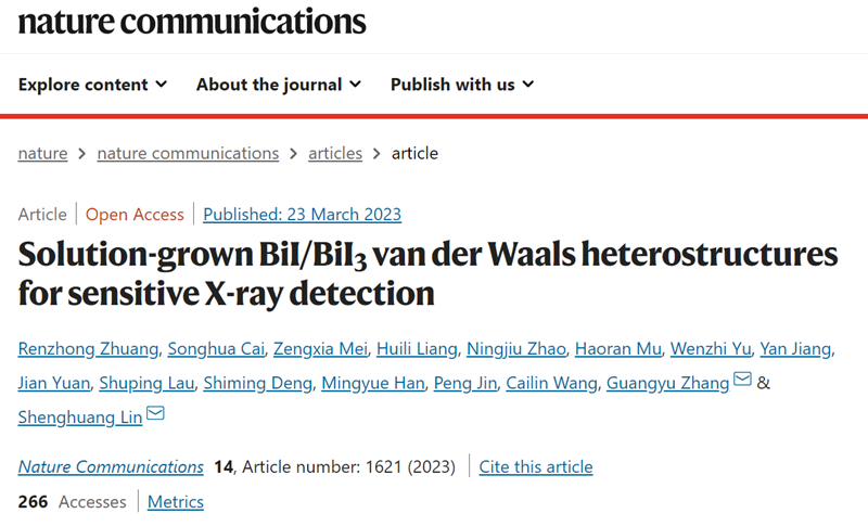 科研进展丨BiI3/BiI范德华异质结构实现高灵敏X-射线探测