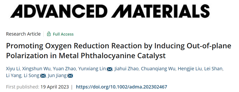 相关成果以“Promoting Oxygen Reduction Reaction by Inducing Out-of-plane Polarization in Metal Phthalocyanine Catalyst”为题在国际著名期刊Advanced Materials上发表。李喜玉为第一作者,松山湖材料实验室为第一单位。上述研究工作得到了松山湖材料实验室粤港澳交叉科学中心卓越青年学者等基金的支持。