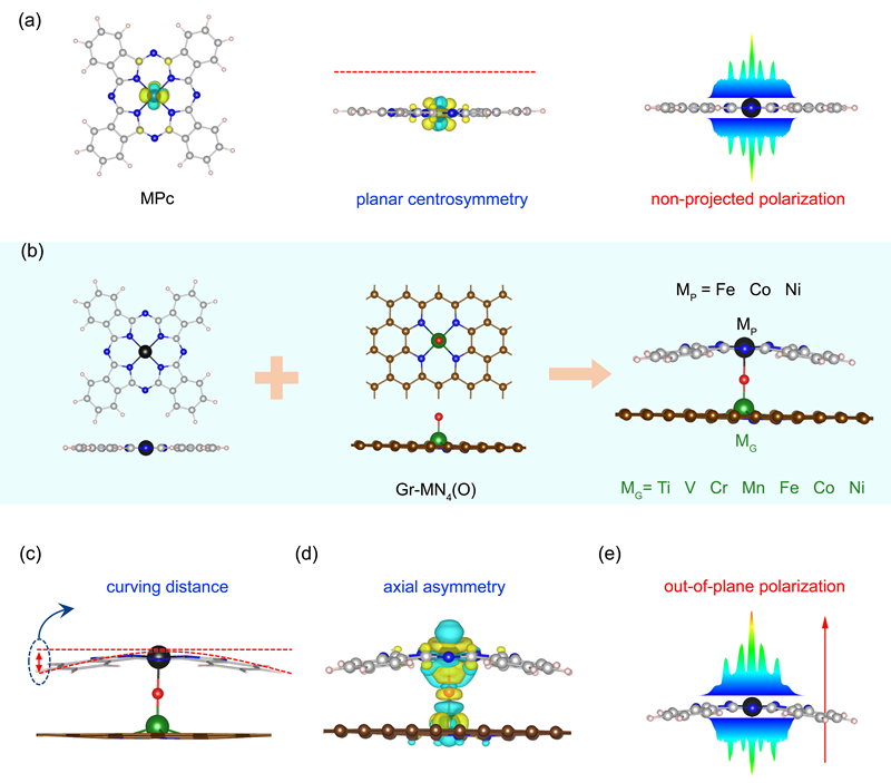 图1 金属酞菁分子轴向配位策略及其诱导面外电荷极化的示意图