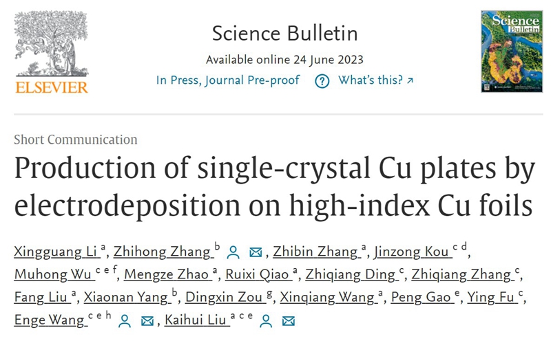 科研进展丨松山湖材料实验室轻元素材料团队突破电镀单晶铜片技术