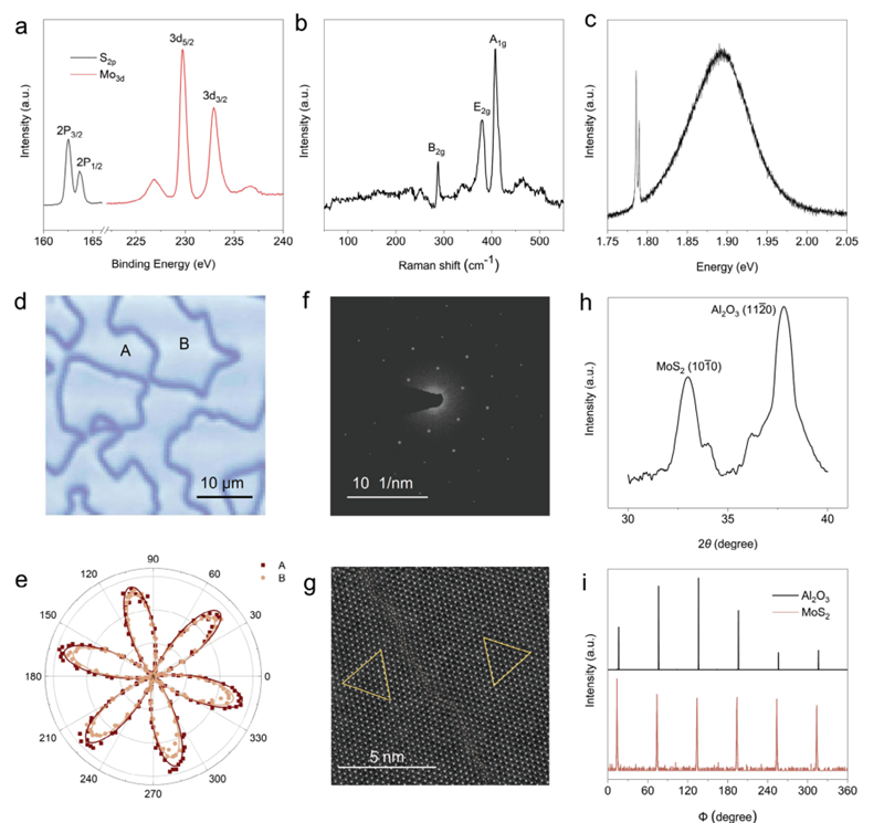 图2.单层8英寸单层MoS2薄膜结构及光学性质表征