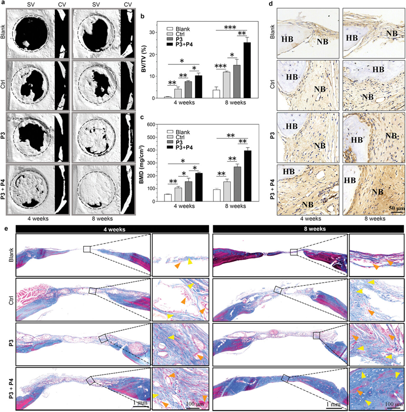 图三. 自适应性双相支架促进骨再生