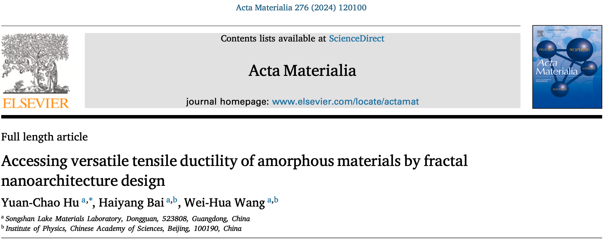 科研进展丨提出利用分形微观结构设计解决非晶态材料拉伸脆性问题的新思路
