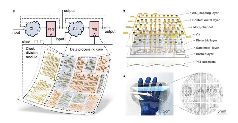 图1. 协同优化二硫化钼柔性中规模集成电路展示