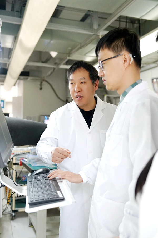 图2 张广宇研究员和第一作者赵交交就实验数据进行讨论