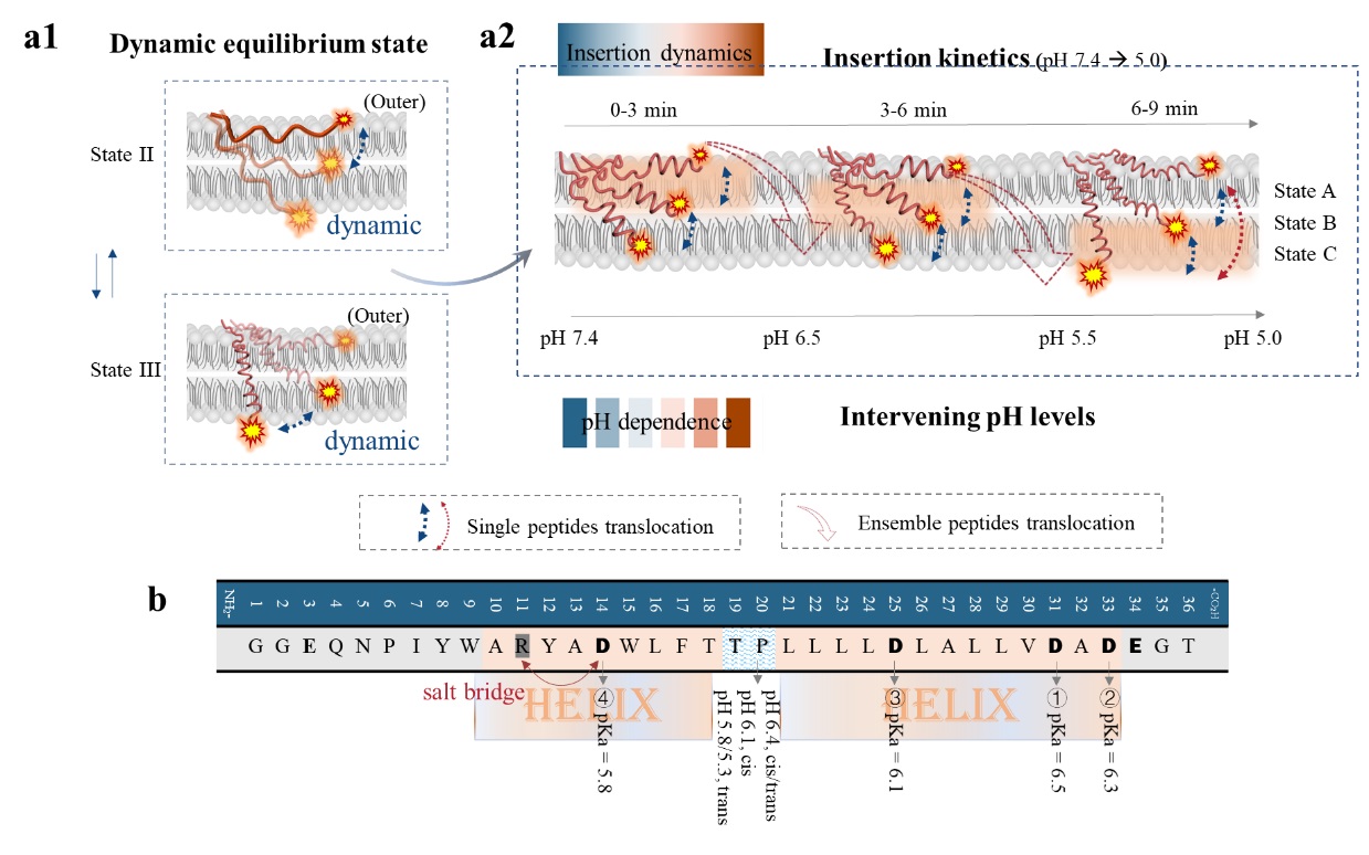 科研进展丨质子化调控的多肽插膜动力学:亚稳态分子构象及其转变