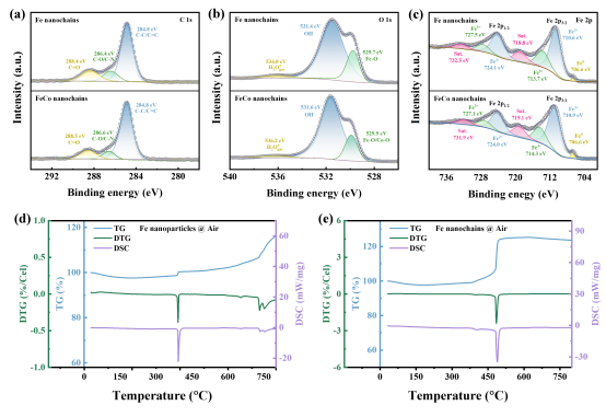 图3 Fe基纳米链的自然氧化态与热稳定性