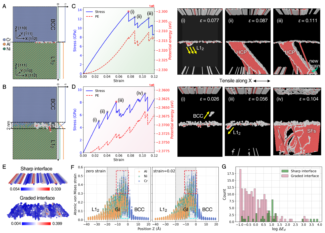 这一研究成果的应用前景十分广阔,所提出的通用化梯度界面工程策略,不仅为破解析出强化合金的强度-塑性权衡难题提供了全新方案,推动了复杂成分合金在航空发动机涡轮叶片、核反应堆部件等极端环境结构材料领域的应用,也为其他多相合金的界面设计与性能调控提供了重要借鉴,为下一代结构材料的研发奠定了理论与实验基础。